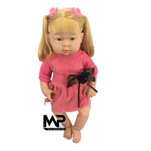 בת לבנה עם שמלה ורודה ושיער בלונדיני